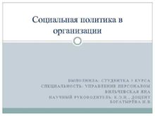Социальная политика в организации ВЫПОЛНИЛА СТУДЕНТКА 3 КУРСА