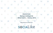 Аналитика бренд-сообществ ВКонтакте Осень-2012 Подготовлено Socialist
