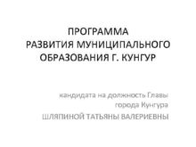 ПРОГРАММА РАЗВИТИЯ МУНИЦИПАЛЬНОГО ОБРАЗОВАНИЯ Г КУНГУР кандидата на