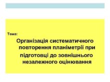 Тема Організація систематичного повторення планіметрії при підготовці до