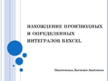 НАХОЖДЕНИЕ ПРОИЗВОДНЫХ И ОПРЕДЕЛЕННЫХ ИНТЕГРАЛОВ В EXCEL Подготовила