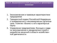 Тема 4 Предпринимательская деятельность и организации в экономике