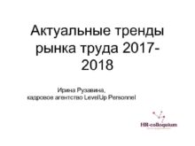 Актуальные тренды рынка труда 20172018 Ирина Рузавина кадровое