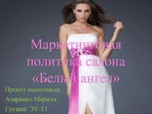 Маркетинговая политика салона Белый ангел Проект выполнила Азаренко