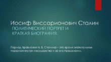 Иосиф Виссарионович Сталин ПОЛИТИЧЕСКИЙ ПОРТРЕТ И КРАТКАЯ БИОГРАФИЯ