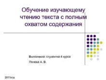 Обучение изучающему чтению текста с полным охватом содержания