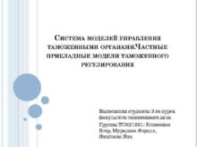 СИСТЕМА МОДЕЛЕЙ УПРАВЛЕНИЯ ТАМОЖЕННЫМИ ОРГАНАМИ ЧАСТНЫЕ ПРИКЛАДНЫЕ МОДЕЛИ