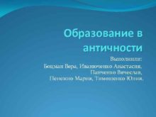 Образование в античности Выполнили Боцман Вера Иванюченко Анастасия