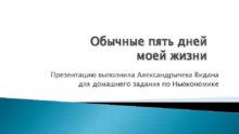 Обычные пять дней моей жизни Презентацию выполнила Александрычева