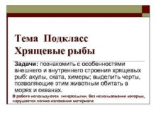 Тема Подкласс Хрящевые рыбы Задачи познакомить с особенностями