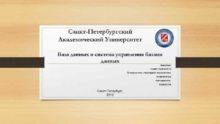 Санкт-Петербургский Академический Университет База данных и система управления