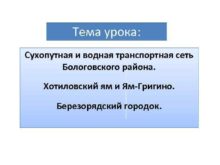 Тема урока Сухопутная и водная транспортная сеть Бологовского