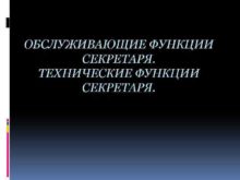 ОБСЛУЖИВАЮЩИЕ ФУНКЦИИ СЕКРЕТАРЯ ТЕХНИЧЕСКИЕ ФУНКЦИИ СЕКРЕТАРЯ План
