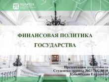 ФИНАНСОВАЯ ПОЛИТИКА ГОСУДАРСТВА Презентацию подготовила Студентка группы