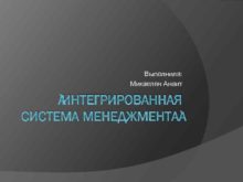 Выполнила Микаелян Анаит ИНТЕГРИРОВАННАЯ СИСТЕМА МЕНЕДЖМЕНТА