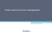 Этапы стратегического планирования Лекция 2 Этапы стратегического