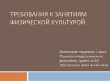 ТРЕБОВАНИЯ К ЗАНЯТИЯМ ФИЗИЧЕСКОЙ КУЛЬТУРОЙ Выполнила студентка 1