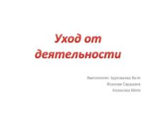 Уход от деятельности Выполнили Бурнашева Валя Исакова Сардаана