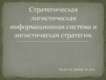 Стратегическая логистическая информационная система и логистическая стратегия Будусов