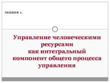 ЛЕКЦИЯ 1 Управление человеческими ресурсами как интегральный компонент