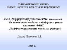 Математический анализ Раздел Функция нескольких переменных Тема Дифференцируемость