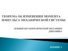 ТЕОРЕМА ОБ ИЗМЕНЕНИИ МОМЕНТА ИМПУЛЬСА МЕХАНИЧЕСКОЙ СИСТЕМЫ ЛЕКЦИИ