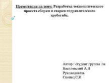 Презентация на тему Разработка технологического проекта сборки и