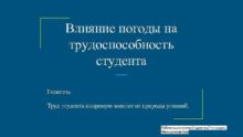 Влияние погоды на трудоспособность студента Гипотеза Труд студента