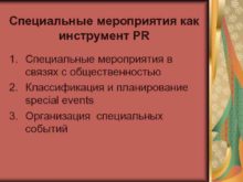 Специальные мероприятия как инструмент PR 1 Специальные мероприятия