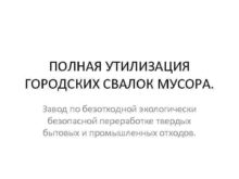 ПОЛНАЯ УТИЛИЗАЦИЯ ГОРОДСКИХ СВАЛОК МУСОРА Завод по безотходной