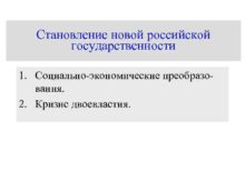 Становление новой российской государственности 1 Социально-экономические преобразования 2