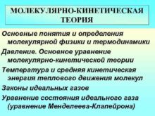 МОЛЕКУЛЯРНО-КИНЕТИЧЕСКАЯ ТЕОРИЯ Основные понятия и определения молекулярной физики