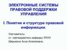ЭЛЕКТРОННЫЕ СИСТЕМЫ ПРАВОВОЙ ПОДДЕРЖКИ УПРАВЛЕНИЯ I Понятие и