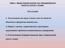 ТЕМА I ОБЩЕЕ ЯЗЫКОЗНАНИЕ КАК СПЕЦИФИЧЕСКАЯ ОБЛАСТЬ НАУКИ