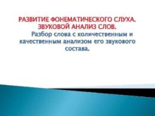 РАЗВИТИЕ ФОНЕМАТИЧЕСКОГО СЛУХА ЗВУКОВОЙ АНАЛИЗ СЛОВ Разбор слова