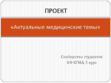 ПРОЕКТ Актуальные медицинские темы Сообщество студентов КФ КГМА