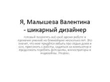 Я Малышева Валентина — шикарный дизайнер готовый посвятить