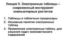 Лекция 5 Электронные таблицы современный инструмент компьютерных