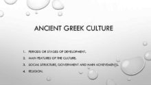 ANCIENT GREEK CULTURE 1 PERIODS OR STAGES OF