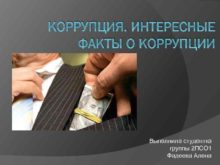 КОРРУПЦИЯ ИНТЕРЕСНЫЕ ФАКТЫ О КОРРУПЦИИ Выполнила студентка группы