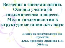 Введение в эпидемиологию Основы учения об эпидемическом процессе