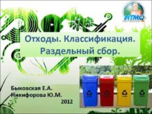 Отходы Классификация Раздельный сбор Быковская Е А Никифорова