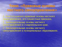 Тема Правовые основы местного самоуправления 1 Конституционно-правовые основы
