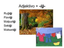 Adjektivo -iĝRuĝiĝi Flaviĝi Malpuriĝi Sekiĝi Malsaniĝi
