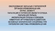 ОБСЛЕДОВАНИЕ БОЛЬНЫХ С ПАТОЛОГИЕЙ ОРГАНОВ КРОВООБРАЩЕНИЯ ОПРОС ОСМОТР
