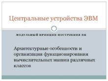 Центральные устройства ЭВМ МОДУЛЬНЫЙ ПРИНЦИП ПОСТРОЕНИЯ ПК Архитектурные