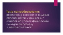 Тема самообразования Воспитание скоростно-силовых способностей учащихся 6 -7