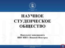 НАУЧНОЕ СТУДЕНЧЕСКОЕ ОБЩЕСТВО Факультет менеджмента НИУ ВШЭ- Нижний