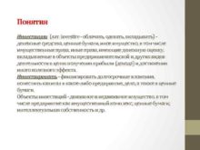 Понятия Инвестиции лат investire — облачать одевать вкладывать