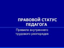 ПРАВОВОЙ СТАТУС ПЕДАГОГА Правила внутреннего трудового распорядка